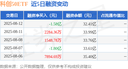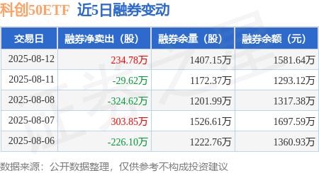 本站消息,8月12日,科创50ETF(588000)融资买入7.85亿元,融资偿还9.43亿元,融资净卖出1.58亿元,融资余额32.41亿元。